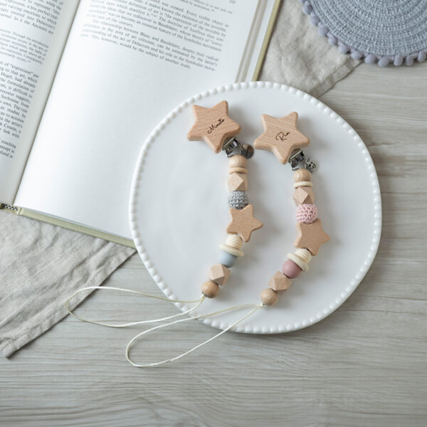 くすみカラーと星のウッドビーズがポイントのマルチホルダー。meetsではレーザー彫刻での名入れも無料(※クリップ部分のみ)